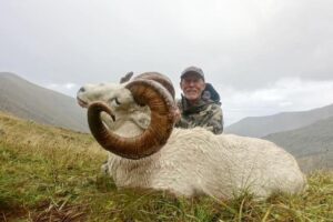 We had a cloudy and cooler than normal summer but not a lot of rain. There seemed to be just enough showers to keep the grass and berries growing but very little high water. The blueberry crop was amazing—the best crop of big fat berries that I have seen in 29 years at Gana. There seemed to be good antler growth on the moose and caribou and we had a great crop of big healthy lambs. We ended up taking 20 rams that averaged 37 inches in length and 10 years of age –100% success for clients who completed their hunts. We took a total of 31 bull caribou with an average B&C gross score of 380—8 bulls grossed over 400 B&C. All caribou hunters were able to harvest bulls except a pair of archery hunters who had some stalk opportunities but some really tough luck. Many of our sheep and moose hunters were able to add a nice caribou to their harvest. The fall was quite warm and therefore the moose rut was slow. One archery moose hunter stalked several great bulls but never did get a good clean shot opportunity and went home without a bull despite staying extra days. All the other clients were successful on 6 bull moose that averaged 58 inches in width—One great bull grossed 247 B&C. One of 3 archery caribou hunters took a great bull that scored 390 B&C after trying several stalks at a huge bull that would have scored well over 400.
