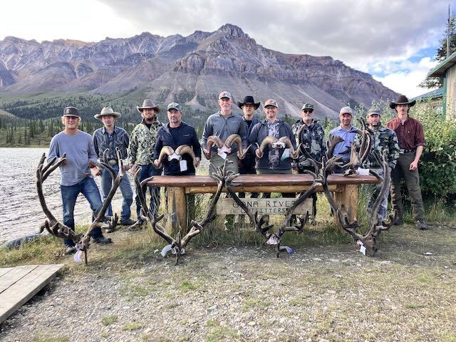 Chris Drazan hunted on the “Rockpile” with guide Harrison Hook and packer Nathan Grinde and took an 11 year old 42+ ram. Repeat hunter Gord Homenick hunted with guide Riley Janz and checked out a couple of good rams but could not make the climb to get to them because of foot pain. Two on one caribou hunters Kurt Keskimaki and Rob Madsen hunted at Wilber Camp with guide Henry Boden. Rob drew first blood with a huge velvet bull that grossed 429. Kurt was archery hunting and he had several attempts at an even bigger bull that they eventually bumped out of the area. They returned to base camp where Kurt was able to take a 390 hard horned bull with his bow. On our fourth horseback hunt Mak Kern wounded a good 36 inch ram with his bow and ended up finishing it with a rifle. Two on one caribou hunters John Primasing and Doug Eberhardt hunted on the Fritz River with guide Jayden Drost and both took home good bulls. Long time clients Steve & Jack Mulvihill tried for a big old ram on the rockpile with guides Ryan Faehmel & Wyatt Tennant as well as packer Luke Faehmel but could not get him to come out of the cliffs. Steve & Jack next hunted caribou from Base Camp with Wyatt Tennant and Ty Drost and both took nice hard horned bulls. Their next adventure was drifting the Mountain River for moose with guide Henry Boden. The warm weather and slow rut made it tough to call bulls out of the timber but Henry did call in a good bull early one morning but they were not able to get a shot at him when he came out right by camp.